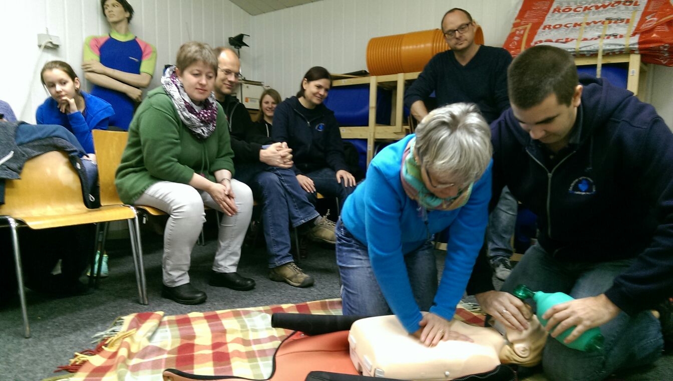 Am 13.03.2016 trafen sich 14 Interessierte und 4 Kursleiter und Helfer zum diesjährigen Auffrischungskurs zur Herz-Lungen-Wiederbelebung.