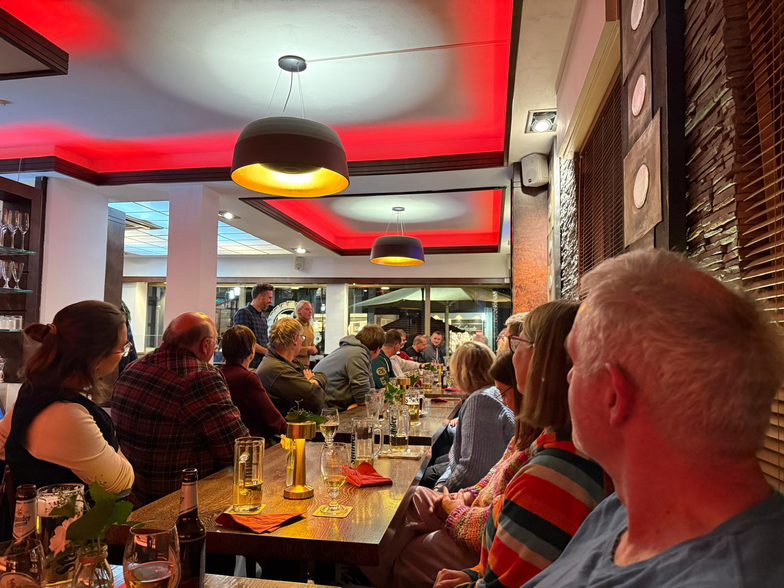 Am Samstag, den 22. November, haben wir unsere diesjährige Weihnachtsfeier abgehalten. Trotz der relativ kurzen Ankündigungszeit von nur dreieinhalb Wochen haben sich immerhin 25 Mitglieder und vier Angehörige getroffen. Das Lokal, das City Café in der Hattingen Altstadt, hatte extra für uns länger geöffnet. Es gab Pizza und Nudeln. Mit etwas Verzögerung kamen auch die drei Fackelschwimmer, Dirk, Wolfgang und Peter M. dazu und wir konnten das angekündigte Schrottwichteln abhalten. Acht Teilnehmer durften sich über teils kuriose Geschenke freuen. Die Stimmung war super, es wurde viel erzählt und gegen 22.30 Uhr machten sich die letzten auf den Heimweg.